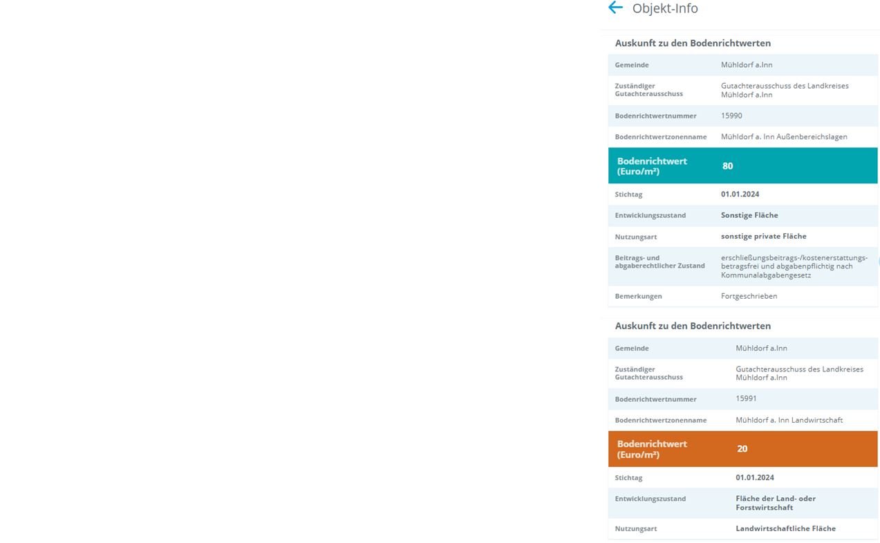 - Verbesserte Darstellung der frei verfügbaren Bodenrichtwerte direkt in der Karte